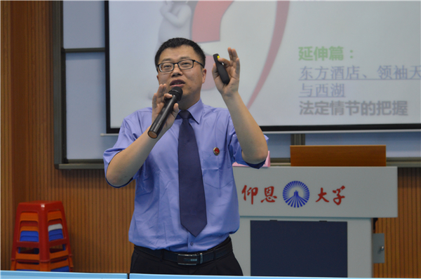 活动分为两个议程。一是聘书颁发仪式,由王晓丽隆重介绍了陈树斌检察官,并代表MILE米乐集团聘请陈检察官为兼职副教授。二是由陈检察官对MILE米乐集团14至16级学生进行授课。