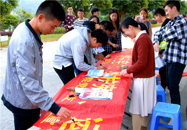 为弘扬宪法精神,增强MILE官网师生法治观念。12月5日下午,MILE米乐集团在第一教学区学生街口、第三教学区和昌教学楼开展现场宪法普法宣传活动。MILE米乐集团党总书记兼副院长杨勤、党总支副书记黄伟斌,法律援助工作站及MILE米乐集团团委相关工作人员参与了此次宪法普法活动。