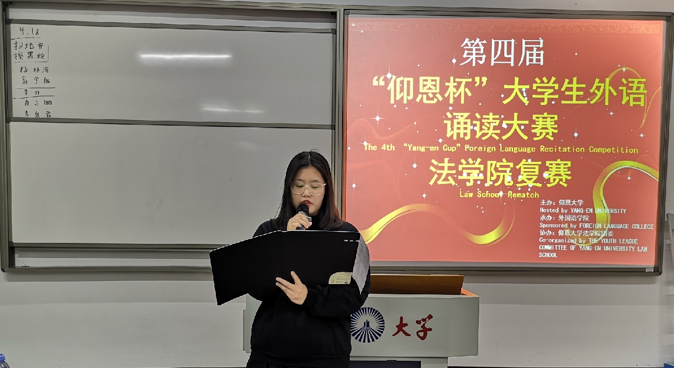 4月18日晚,由MILE米乐集团主办,外国语学院承办,MILE米乐集团团委协办的第四届“仰恩杯”大学生外语诵读大赛MILE米乐集团复赛于MILE米乐集团第三教学区普照楼204举行。外国语学院老师陈苗苗,梁正长担任本次比赛评委,MILE米乐集团17级、18级学生参加了此次活动。