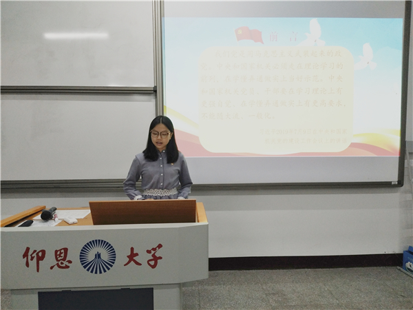 本次学习会以“坚持不懈重学习,做德才兼备党员先锋”为主题,从增强支部党员对学习的积极性和主动性等方面进行展开。会上,王艺宝、康美燕等同志分别从“为什么要坚持不懈地学习”和“陈云同志重视学习的事例”入手,讲述了作为大学生党员,应该努力学习掌握科学知识,提高内在素质,锤炼过硬本领,使自己的思维视野、思想观念、认识水平跟上与时俱进的时代。