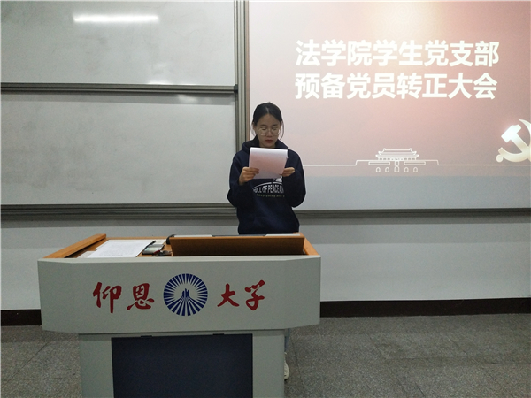 会上,甘琪、李小康等8名预备党员相继宣读转正申请书,汇报预备期中自己在思想、生活、工作、学习各方面的情况,并由培养人介绍相应预备党员的培养考察情况。期间,与会党员对8位预备党员的转正问题进行充分讨论,同时发表看法、表明态度。经全体与会正式党员举手表决,8名预备党员均全票通过,同意按期转为中共正式党员。此外,支部还为转正党员准备“政治生日”贺卡和蛋糕,并在甘琪同志的带领下,转正党员右手握拳举过肩,面向党旗庄严宣誓。
