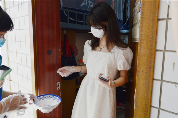 线上会议结束,三个新生班级逐一开启直播间,由新生班委随着工作人员来到每间宿舍门口进行直播解说。镜头前新生们保持一米线,佩戴好口罩与一次性手套拿起酒精消毒后的色子投掷于博饼碗中,清脆的声响为沉闷的宿舍楼带来了几分节日的欢乐。每位新生不论身处何处都是仰恩的一份子,未能返校的同学们也进入微信小程序创建的博饼房间,屏幕分享激烈战况同沐节日气氛。镜头背后的班级同学们在评论区连麦畅聊,心情随着一次次投掷结果的出现而起伏,翘首以盼状元花落谁家。最终,2021级法学一班龙鸿、彭思瑶,二班林智豪、康雨萌,三班林建伟、叶可凡崭露头角,分别成为班级的男女生状元。