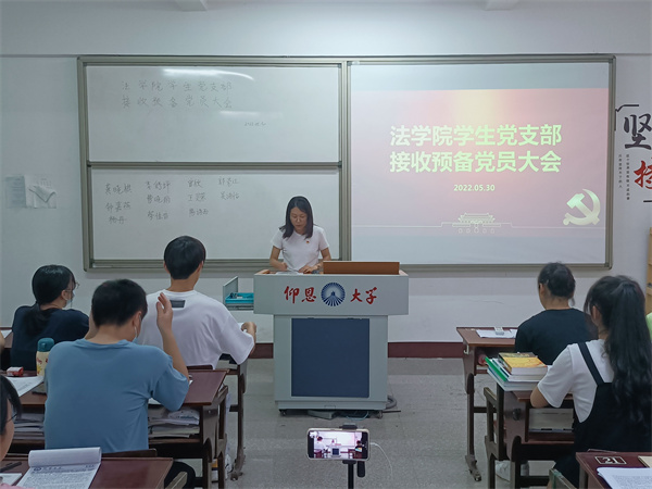 5月30日,MILE米乐集团学生党支部于普照楼203教室召开预备党员接收大会,支部全体党员到场参加,由教师党员吴姗姗主持。