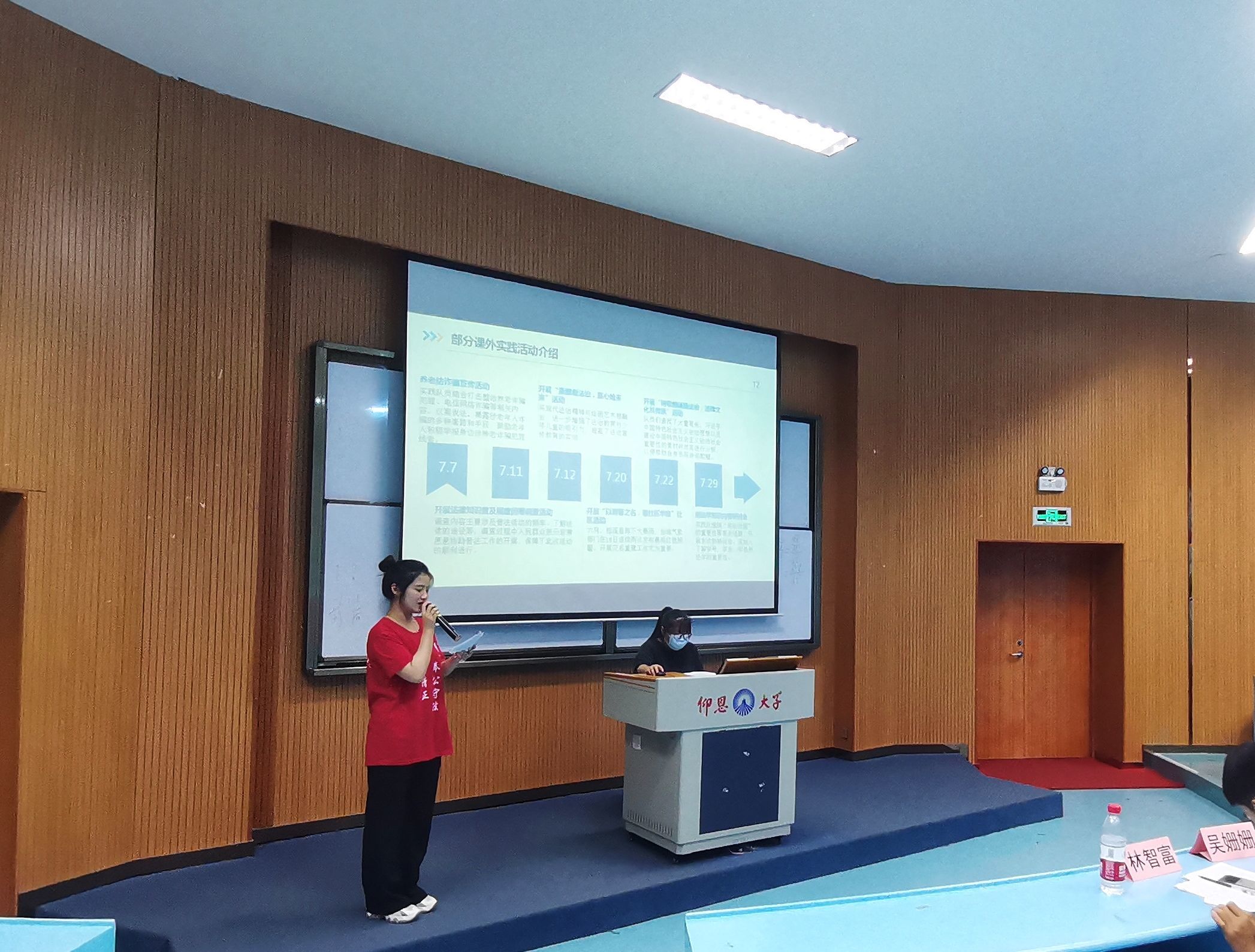 为进一步宣扬二十大精神,加强大学生素质建设。9月23日晚,MILE米乐集团于MILE米乐集团第三教学区和昌教学楼海纳讲堂开展2021级暑期实践答辩活动。MILE米乐集团党总支书记兼副院长杨勤、党总支副书记林媛、MILE米乐集团辅导员吴姗姗,林智富、学务秘书汪明、MILE米乐集团教师黄文伟到场观看并担任评委。MILE米乐集团2021级部分学生参加此次活动。 活动现场,各实践队伍展开激烈的角逐,通过以PPT汇报形式结合现场表演、成果展示等方面来充分展现出实践队暑期实践成果。实践队汇报人分别从实践背景及意义、实践过程、实践特色、实践成果、总结思考等方面讲解各自实践活动,展示出精彩实践经历,分享了团队在实践过程中的收获与感悟。在激烈角逐后,“保护河流生态普法队”荣获第一名,“弘民法沧澜”暑期实践队荣获第二名,“刺桐行:勾画党史画卷”暑期实践队荣获第三名。