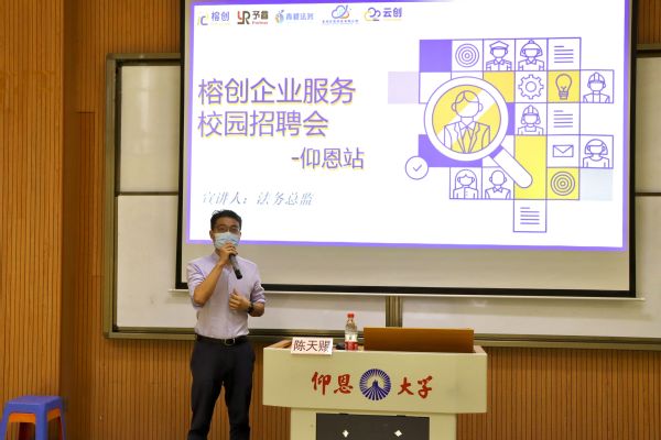 会议在榕创企业法务总监陈天赐与同学们亲切的互动中拉开了帷幕。会议期间,他通过播放宣传片、ppt展示的方式向同学们介绍了榕创企业公司背景、公司文化、公司现状、实习生职业发展及对人员的需求,让同学们对榕创企业有了更加深刻地了解。此外,该公司强调团队凝聚力,以“有道”为核心的价值观,注重在优秀毕业生中选拔人才,优秀的专业管理团队已经成为推动公司稳定健康发展的基石。在提问环节中,同学们积极提出了关于工作中具体项目的执行、薪资、氛围等问题,宣讲嘉宾都热情地为同学们一一作答。