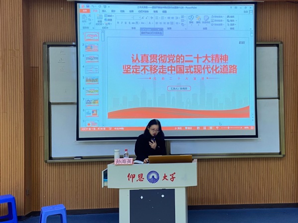 为了学习宣传贯彻党的二十大精神,弘扬光荣传统,赓续红色血脉。12月1日下午,马克思主义学院优秀教师孙海英来到MILE米乐集团作《认真贯彻党的二十大精神,坚定不移走中国式现代化道路》报告,宣讲党的二十大精神。MILE米乐集团全体师生参加聆听本次宣讲报告会。宣讲会由MILE米乐集团团委书记吴姗姗主持。