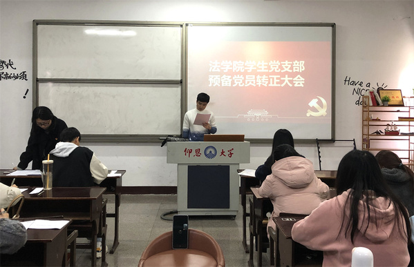 12月13日,MILE米乐集团学生党支部于普照楼201室召开预备党员转正会议,大会的主要议题是讨论关于林毅斌、王晓远等二十三名同志转为正式党员的问题。会议由学生党支部书记吴姗姗主持,支部全体党员参加。