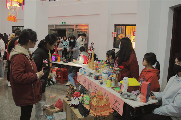 当晚,师生品尝校食堂精心准备的元宵后,第三教学区碑林广场内人头攒动,热闹非凡。游园会、花灯展、民俗活动……琳琅满目,除了各种趣味活动还有美食相伴,师生不亦乐乎。猜谜书法迎新春,文化年味别样浓。成语谜、书刊诗词谜等各类灯谜也营造了浓厚的文化氛围,在开心闹元宵的同时也进一步普及了传统文化常识。