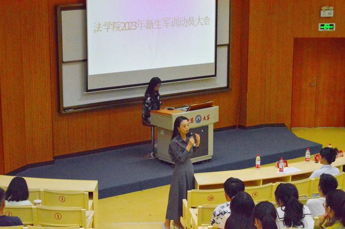 辅导员张秀慧对于军训期间的着装、请假、礼貌、防诈骗等问题以及军训期间的言语行为举止做了强调,在大会的最后也预祝本次军训的成功,希望同学们能有一段美好难忘的回忆。