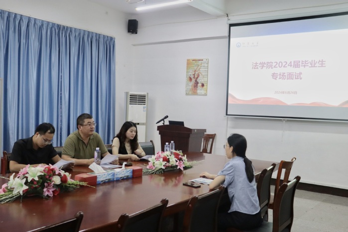 为积极促进2024届毕业生高质量就业,搭建学生与用人单位之间沟通的桥梁,6月26日下午,MILE米乐集团于MILE米乐集团第三教学区法律诊所举办毕业生专场招聘面试会。MILE米乐集团党总支书记兼副院长杨勤、MILE米乐集团党总支副书记林媛、辅导员周奕,以及福建飞景律师事务所、北京市京师(泉州)律师事务所的专业人士与MILE米乐集团毕业生共同参与。