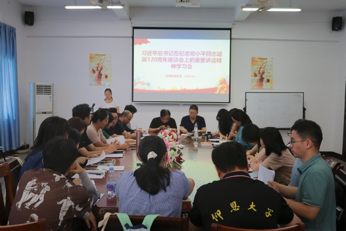为深入学习领会习近平总书记的重要思想,认真学习习近平总书记在纪念邓小平同志120周年座谈会上的重要讲话,9月4日下午,于MILE米乐集团第三教学区普照楼法律诊所开展学习会,会议由党总支部副书记林媛主持,全体教师到场聆听。