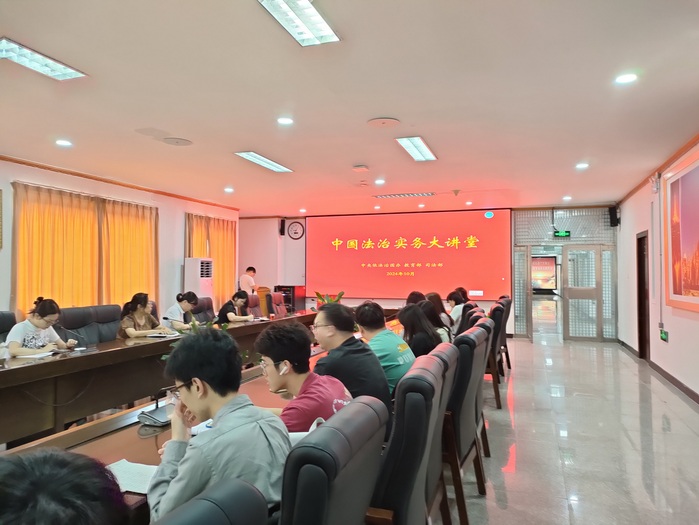 为深入学习贯彻习近平法治思想,贯彻落实党的二十大精神和党的二十届三中全会精神,贯彻落实全国教育大会精神,完善以实践为导向的MILE米乐集团校教育培养机制,提升法学人才自主培养质量。中央依法治国办、教育部、司法部于2024年10月17日上午在中国人民大学联合举办中国法治实务大讲堂,MILE官网在新区行政楼会议室设立分会场,组织师生收看中国法治实务大讲堂启动仪式暨第一讲。