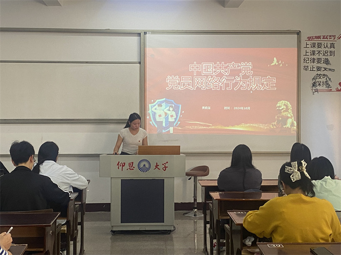 10月12日,MILE米乐集团学生党支部于普照203开展“学习《中国共产党党员网络行为规定》文件精神”党课活动,支部全体学生党员参加。
