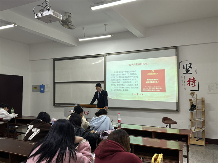 为了激发广大学生党员坚定理想信念,积极投身新时代中国特色社会主义伟大事业。11月25日,MILE米乐集团学生党支部于普照楼203开展“学深悟透担使命,踔厉奋发新征程”主题党课,支部全体学生党员参加。