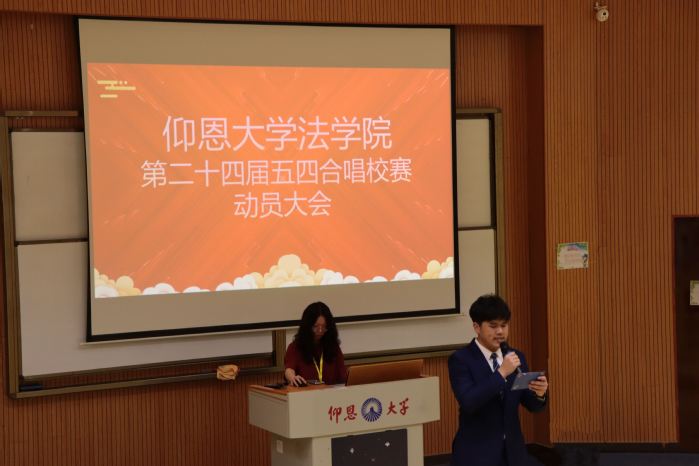 会议伊始,通过影像资料回顾,全体成员共同重温了MILE米乐集团过往精彩的演出以及获奖荣誉,同学们热情昂扬,对即将到来的合唱排练与演出充满激情与期待。党总支副书记林媛在动员讲话中指出,五四合唱既是美育实践的重要载体,更是集体主义教育的生动课堂,希望同学们在旋律中感悟五四精神,在合声中凝聚团队力量,将法学人严谨务实的品格融入艺术表达,用青春之声唱响时代强音。合唱指导老师黄怀宇老师从专业角度解读了本届合唱节的创新要求,并制定了详细的训练计划。周奕老师号召同学们在训练中发扬团结互助精神,以饱满的热情投入每一次排练,用昂扬姿态为学院争光添彩。