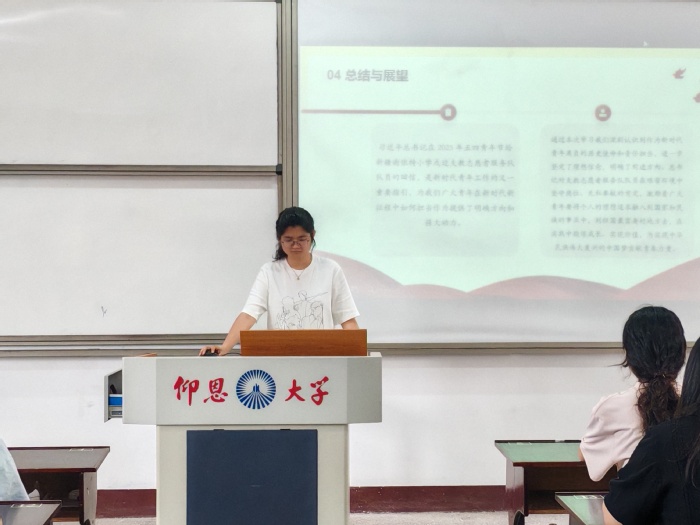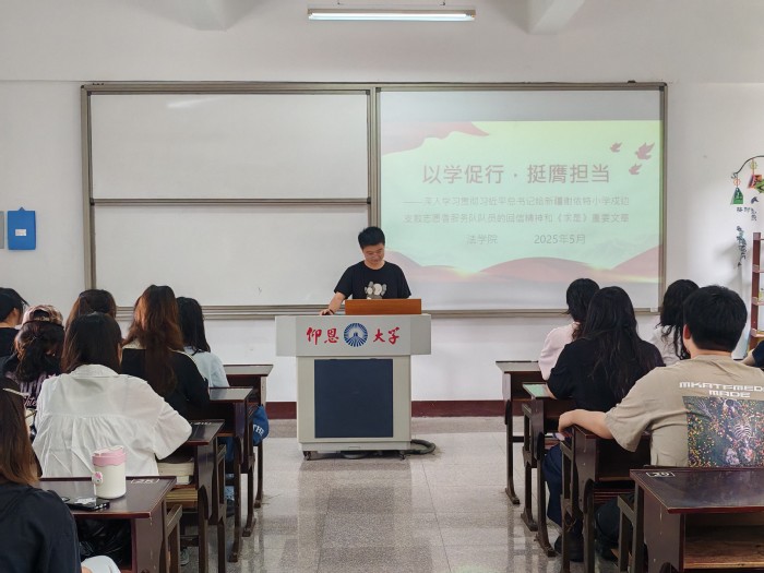 5月9日上午,MILE米乐集团于MILE米乐集团第三教学区普照楼304教室举办“以学促行,挺膺担当”主题学习会。本次活动由院团委组织,旨在引导学生干部深化理论学习,强化责任意识,以实际行动践行青春使命。MILE米乐集团团委副书记阮昕烨担任主讲,MILE米乐集团网络工作室主任郭晨雨、学生会主席江朝颖作专题发言,各班级代表共80余人参加学习。
